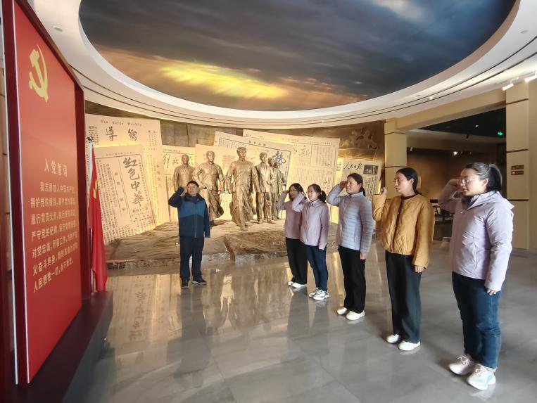 首先,全体党员庄严地重温入党誓词。随后,解说员从中国共产党创立初期、大革命时期、土地革命和战争时期、抗日战争时期、全国解放战争时期、社会主义建设时期、改革开放和社会主义现代化建设新时期及新时代报刊文献等8个版块展示了中国共产党历经百年发展壮大的历史脉络。